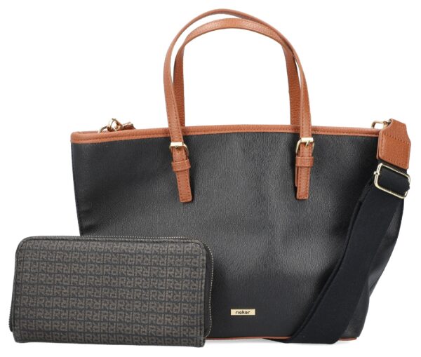Sowohl die Shopper als auch die separate Geldbörse sind in elegantem Schwarz gehalten, was sie zu einem zeitlosen und vielseitig kombinierbaren Accessoire macht.